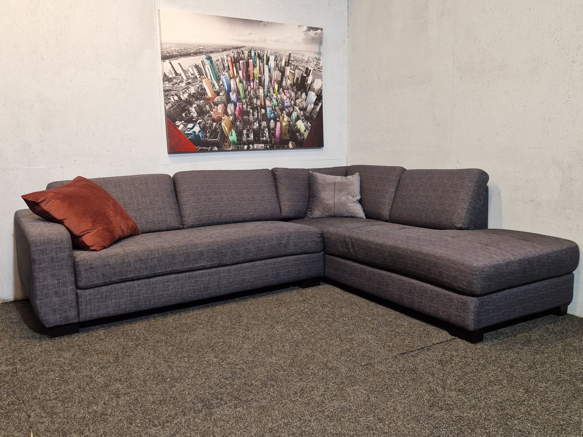 HJØRNESOFA MED ENDEAVSLUTNING/SJESELONG OPPSETT HØYRE. (IKKE VENDBAR)